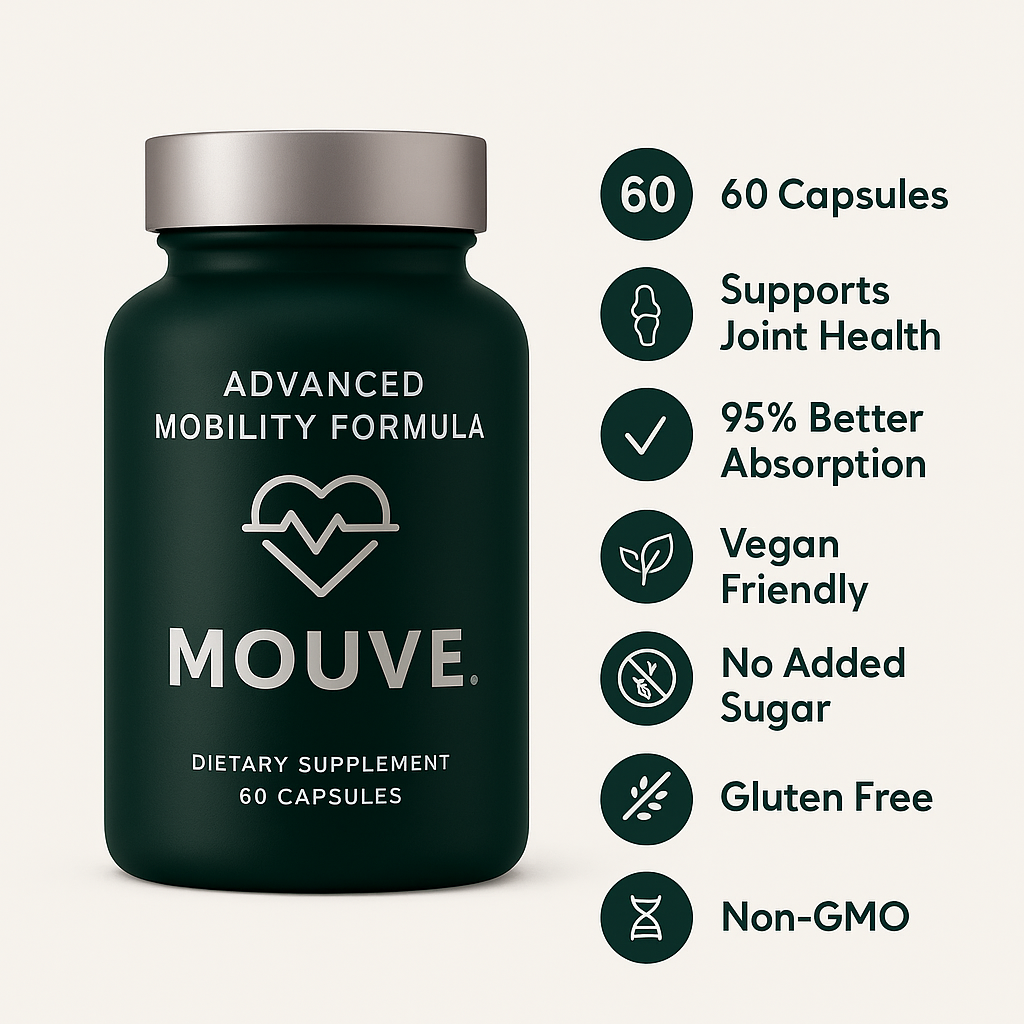MOUVE™ was built by a cross-disciplinary team of sports scientists, nutritionists, physiotherapists, and medical advisors. Every capsule is engineered to keep your joints resilient against the daily wear of an active life.